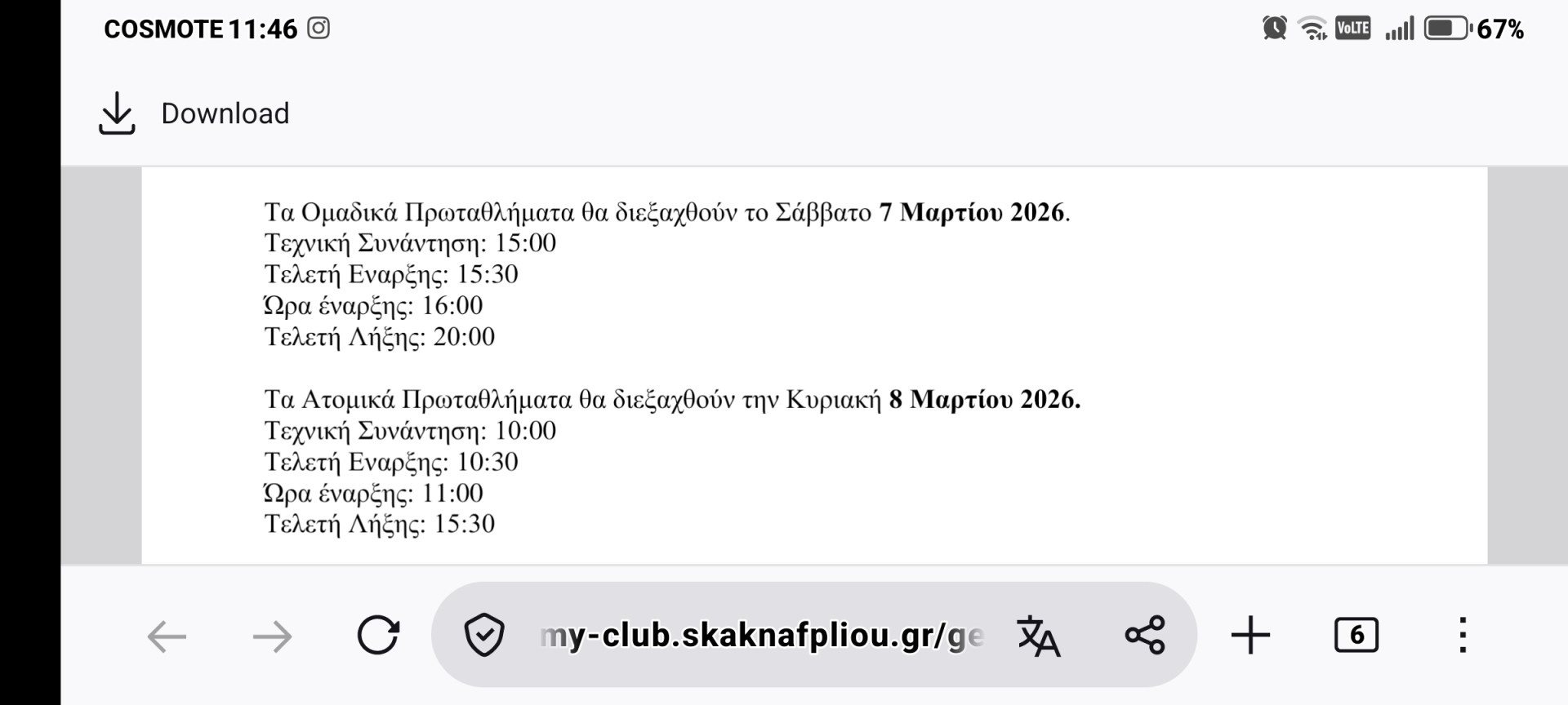 Εβδομαδιαίο Πρόγραμμα - Σκακιστική Ακαδημία Ναυπλίου PDF