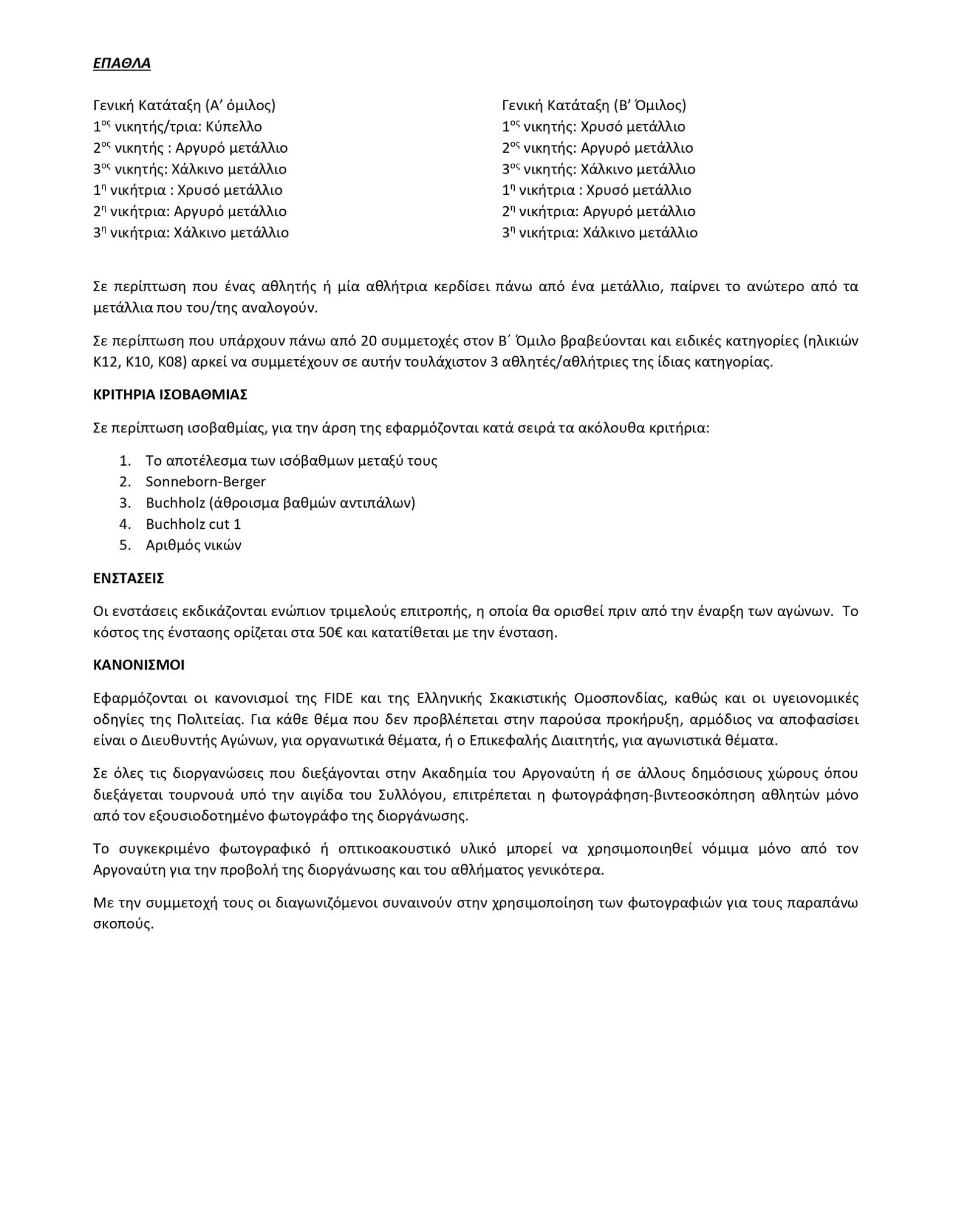 | Σκάκι | 14:30-16:00 Προαγωνιστικό 2025-2026 |