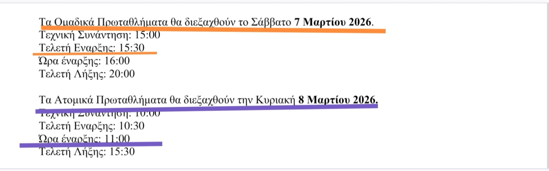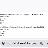 | Σκάκι | 16:00-18:00 Αγωνιστικό 2025-2026 |